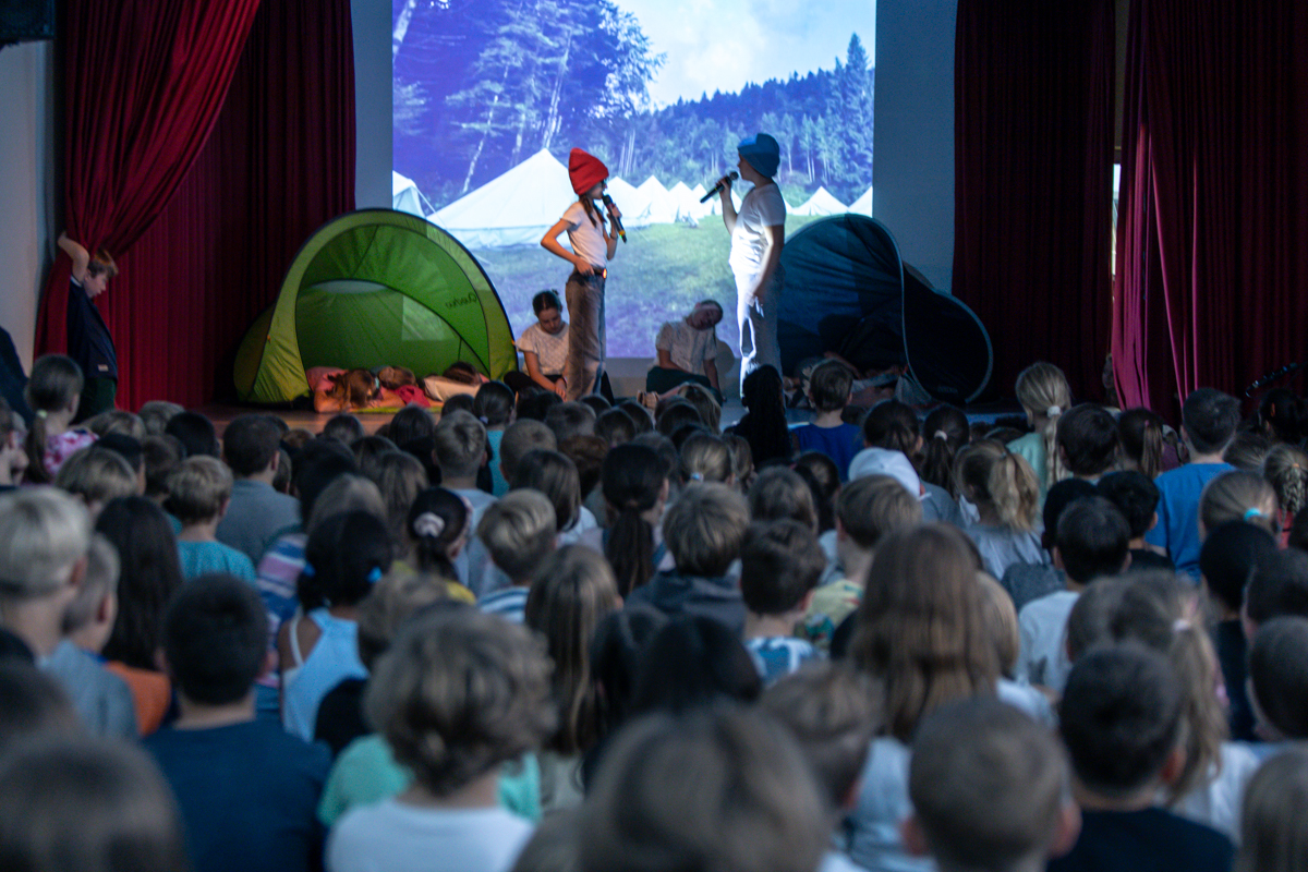 Ein Jahr lang haben die 16 Kinder der Theater-Ag an der Brenschenschule geprobt und diesen Donnerstag gab es die Premiere. Die Aula war picke-packe voll und die Spannung unter den Kindern zu greifen spürbar. Das selbst geschriebene Stück wurde präsentiert und der Applaus zum Schluss war tosend! Technik, Vorhang und Darsteller haben unglaublich gut abgeliefert und können zurecht sehr stolz auf sich sein. Aber macht euch selber einen kleinen Eindruck und schaut euch die weiteren Fotos an.