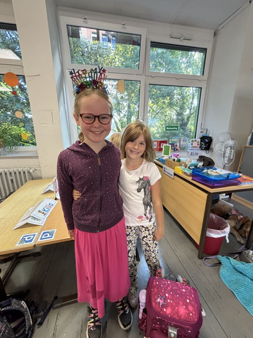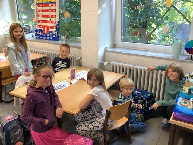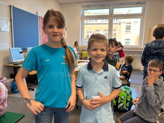 Die ersten Tage an der Brenschenschule bekamen die Otter den langersehnten Besuch ihrer großen Paten, den Kraken. Mit viel Geduld und Herz haben die größeren Kinder die kleinen Otter begleitet und ihnen den Start in den neuen Schulalltag erleichtert.
