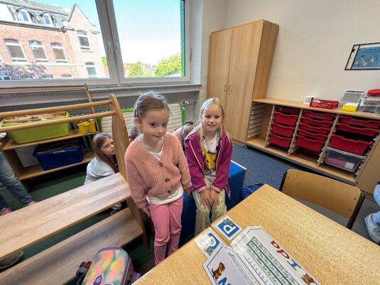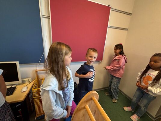 Zusammen mit ihren Paten durften die Otter nicht nur ihren Klassenraum erkunden, sondern im Rahmen einer spannenden Schulrallye auch das gesamte Schulgebäude kennenlernen. Besonders viel Spaß machte dabei das Ausprobieren der Spielgeräte auf dem Pausenhof.