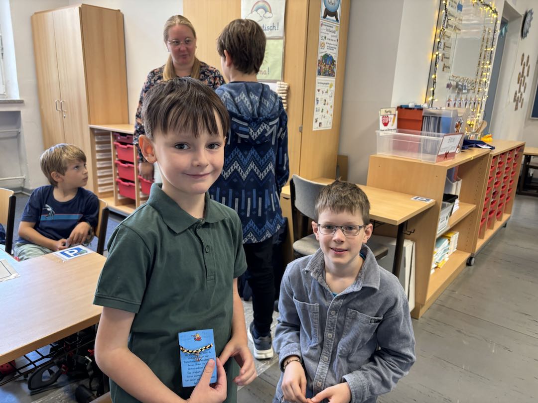 Ein besonderes Highlight waren die Freundschaftsbänder im Partnerlook mit Anker-Symbol, die liebevoll für die neuen Erstklässler gestaltet wurden. Schon am ersten Schultag war die Vorfreude auf die gemeinsame Patenzeit bei allen Kindern deutlich zu spüren.