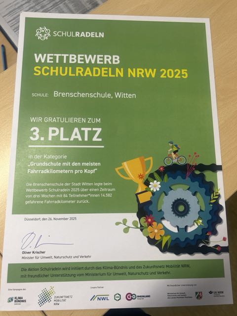 Wir freuen uns sehr, mitteilen zu können, dass die Brenschenschule beim diesjährigen Schulradeln NRW 2025 einen großartigen Erfolg erzielt hat.