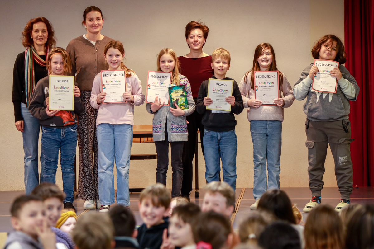 Der Montag statt ganz im Motto des Lesewettbewerbs bei uns an der Brenschenschule. Innerhalb jedes Jahrgangs traten je ein Junge und ein Mädchen aus jeder Klasse an und stellten ihre Lesekünste unter Beweis. Von der ersten bis zur vierten Klasse waren die jeweiligen Schüler wirklich mutig und lasen ihren Mitschülern sehr sicher und gut vor. Der Jury machten sie es überhaupt nicht leicht und bei der jeweiligen Ehrung war es oft wirklich knapp. Als Dank durfte sich jedes Teilnehmerkind ein Buch aussuchen. Viel Lob und Applaus rundeten das schöne Event ab.