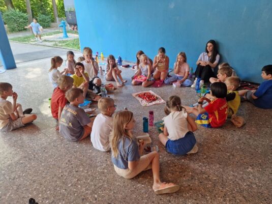 Bei 30 Grad im Klassenzimmer bereits früh am Morgen suchten sich die roten Pandas ein schattiges Plätzchen auf dem Schulhof. In der Pause ließen sich die roten Pandas eine Wassermelone schmecken.